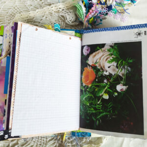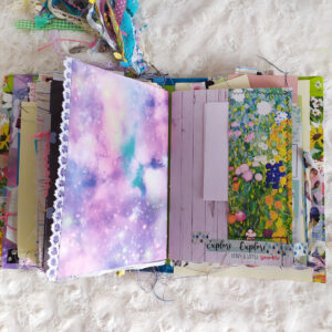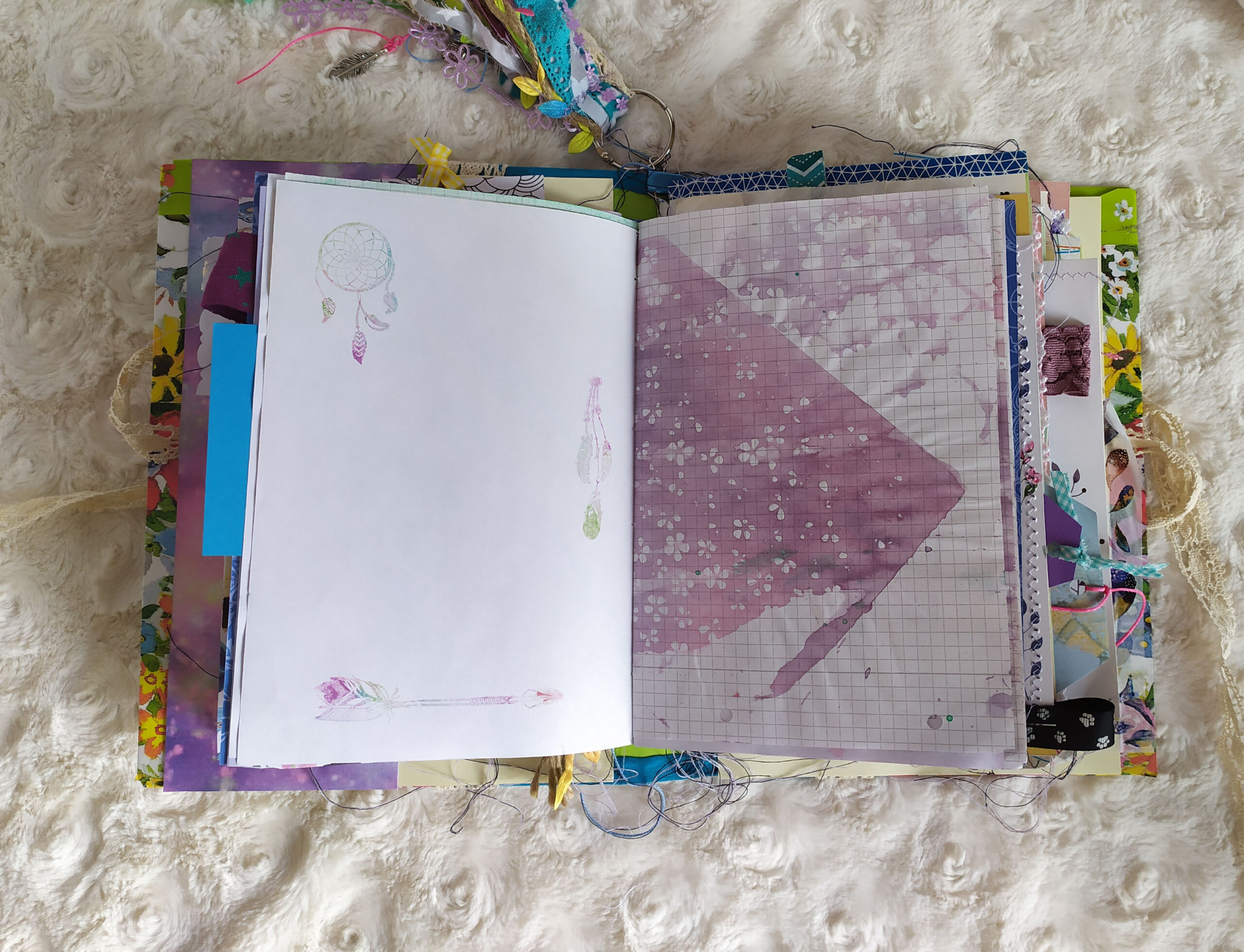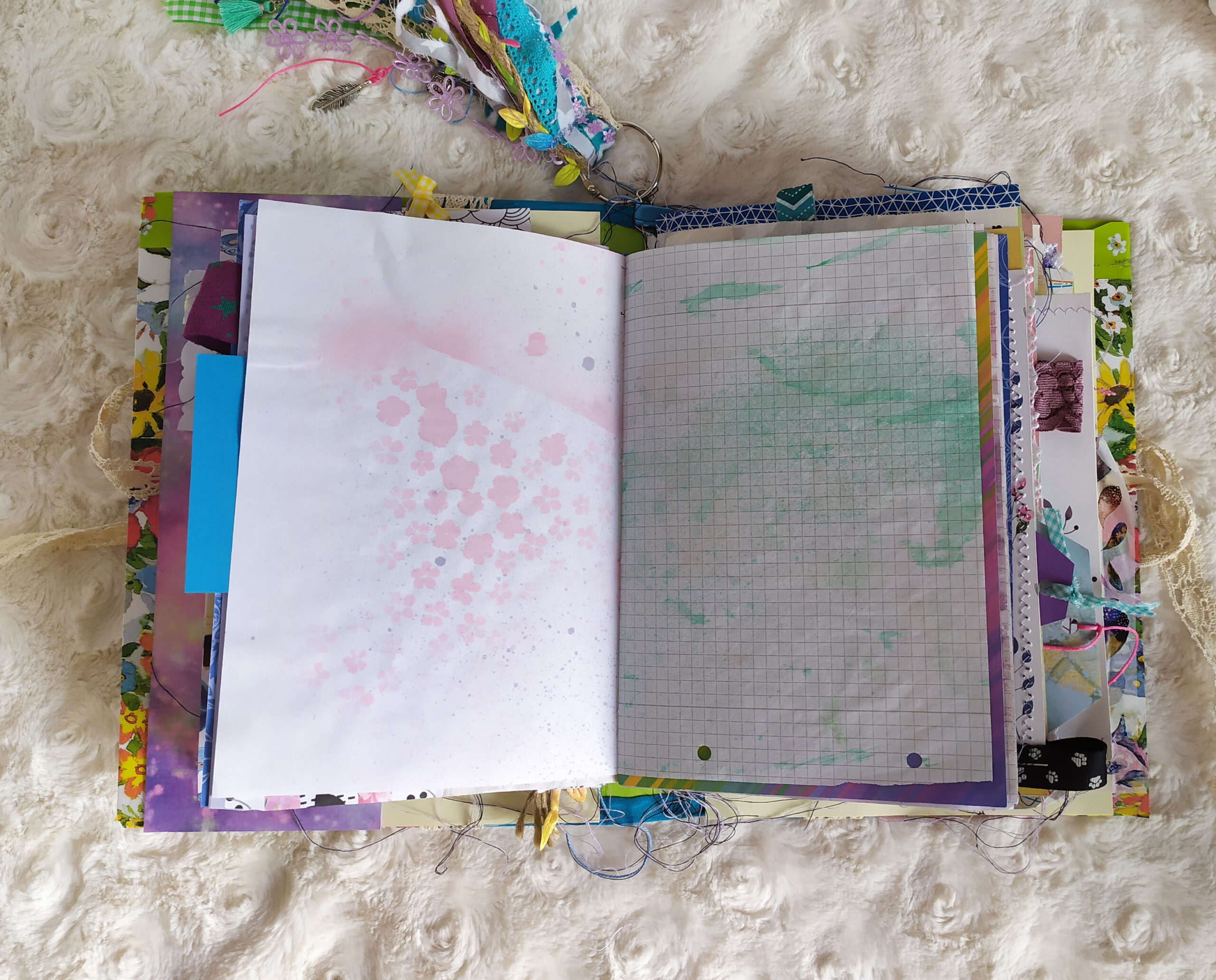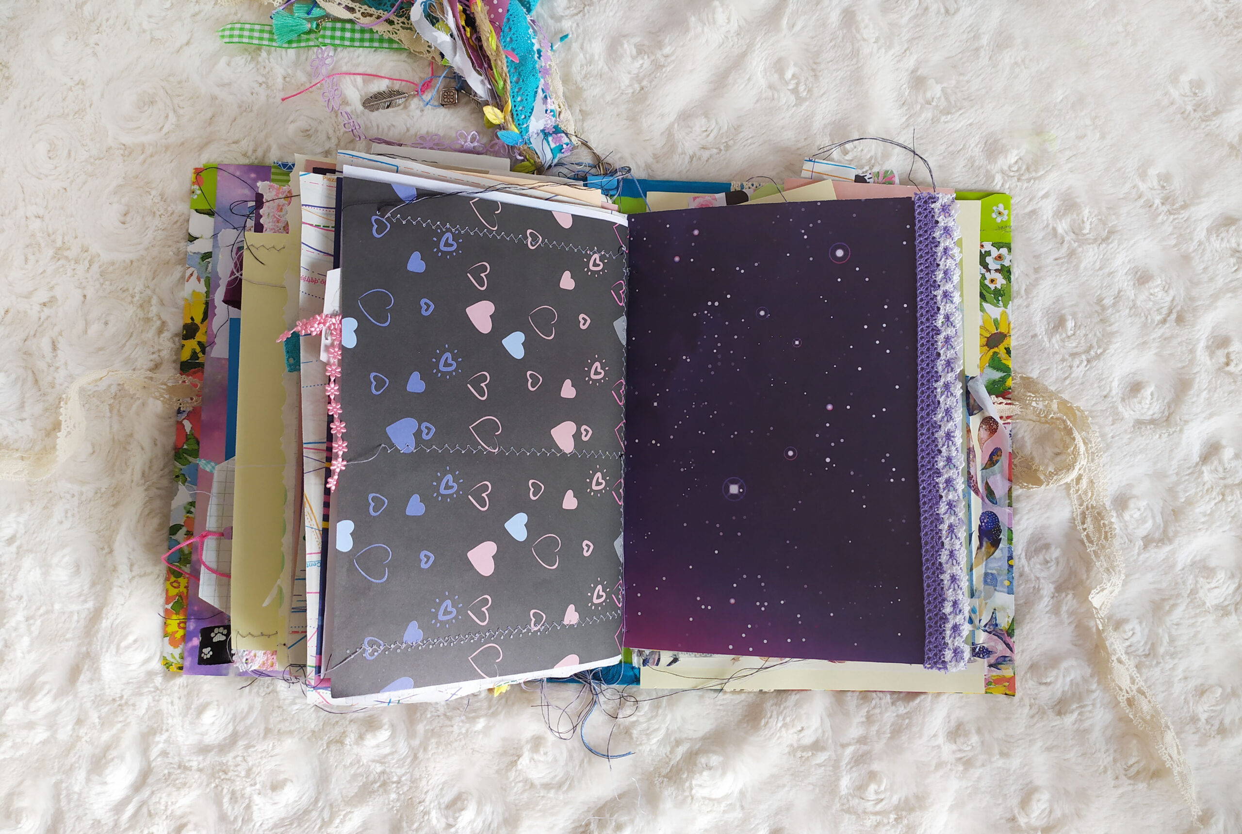 Ten junk journal był prezentem dla dziewczyny uwielbiającej kolory, pozytywny przekaz i rozwój osobisty, kochającej psiaki. Kwiaty, motyle i szeroka paleta barw były motywem przewodnim w tworzeniu tego kawałka książki, a wzbogacone zostały odrobiną gwiazd i kosmosu. Nie wahałam się w użyciu gotowych papierów do scrapbookingu, ale spokojnie, twórczego przetworzenia „śmieci” też nie zabrakło. Chcesz poznać szczegóły?